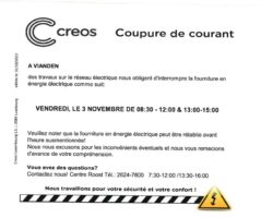 Aufgrund von Arbeiten am Stromkasten der Grundschule hat die Firma CREOS mitgeteilt, dass es am Freitag, den 3. November, in mehreren Haushalten zu Stromausfällen kommen wird. Diese können von 8.00 bis 12.00 Uhr und von 13.00 bis 15.00 Uhr auftreten. Die betroffenen Haushalte wurden von der Firma CREOS informiert.