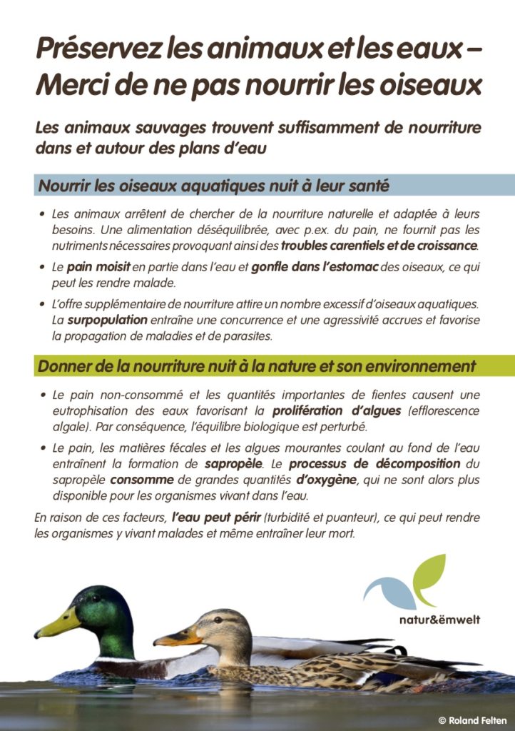 Préservez les animaux et les eaux – Merci de ne pas nourrir les oiseaux